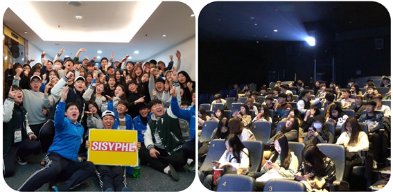항상 함께하는 경영학과 최강 영화토론학회 시지프입니다. 시지프는 영화토론학회로서 집회를 통한 다양한 영상 시청은 물론 단체 영화 관람을 주기적으로 진행합니다. 또한 시험 기간 간식 배부, OB&YB 신구대면식, 신입생과 재학생 직속제도 운영, 타 학회와의 합동집회, MT 등 학회원들을 위한 다양한 행사를 진행하고 있습니다. 시지프의 캐치프레이즈인 ‘항상 함께하는’에서 알 수 있듯이 학회원들이 대학생활을 해나감에 있어서 소중한 동기, 선배, 후배들을 얻어서 가족같은 분위기를 느낄 수 있도록 하겠습니다.